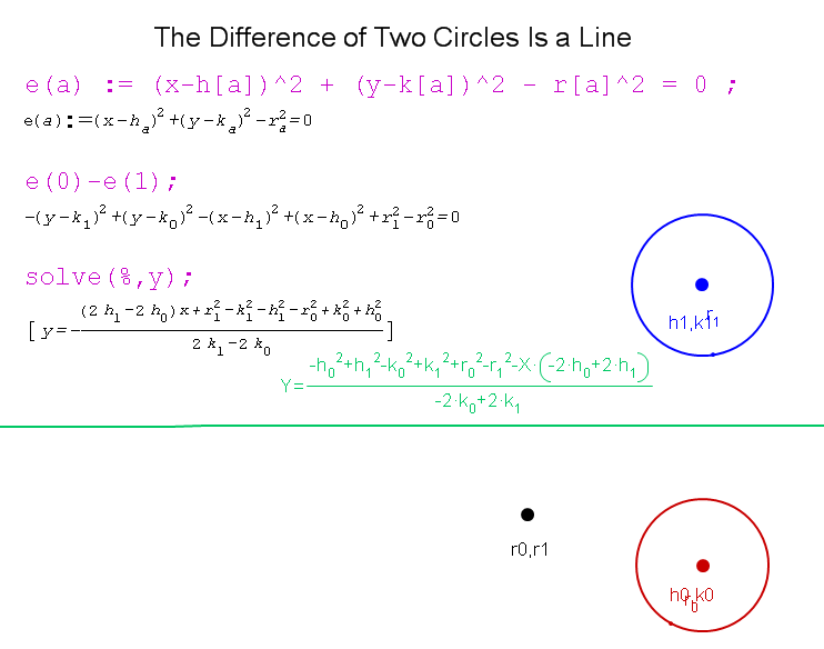 This example shows the derivation in wxMaxima and the implementation in Geometry Expressions. The interested user is urged to work through both!